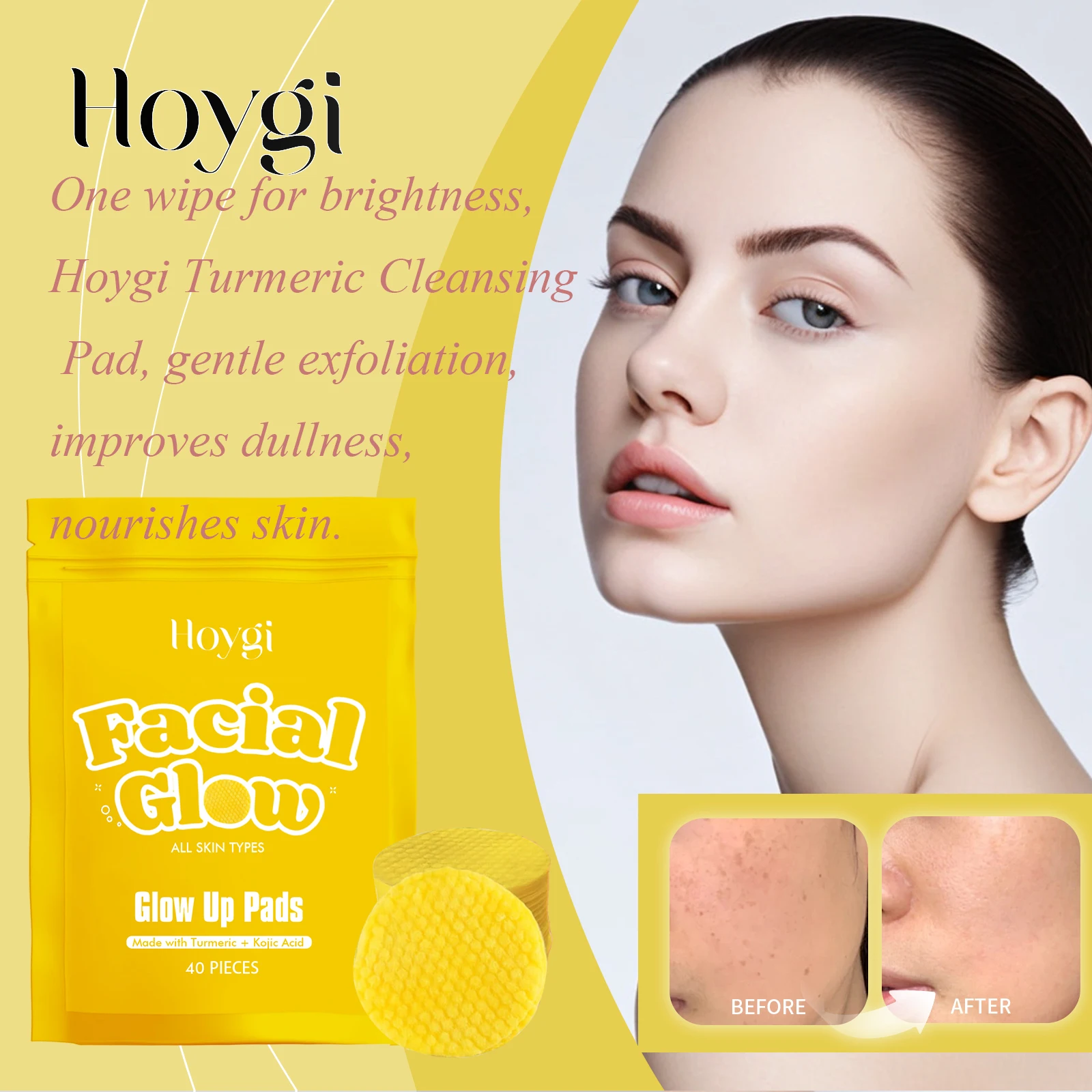 Hoygi 40pcs Turmeric Cleansing Pads Gentle Exfoliating Face Wipes with Natural Extract Brightening Cotton Discs for Daily Skinca