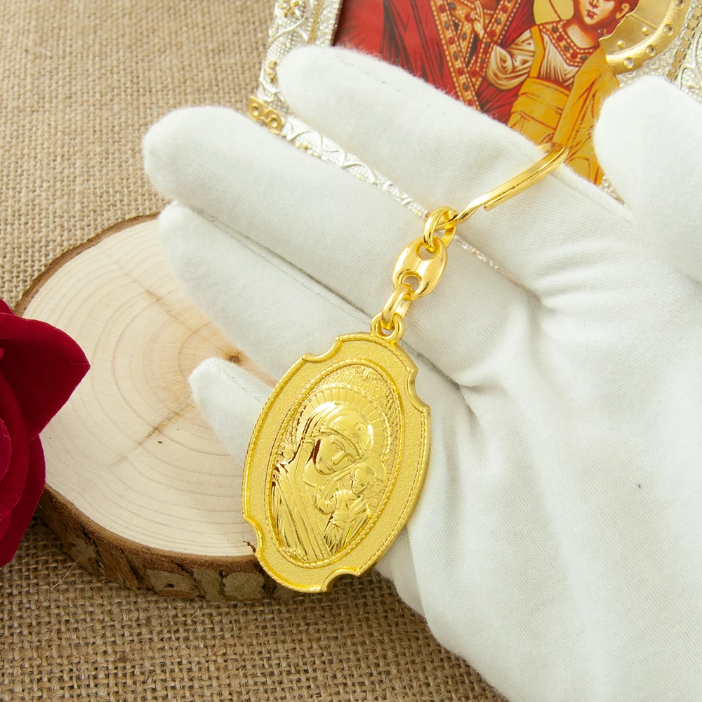 HT Orthodox Religious Gift Catholic Church Souvenir Keychain Gold Plated Virgin Mary Statue Prayer Alloy Keychain