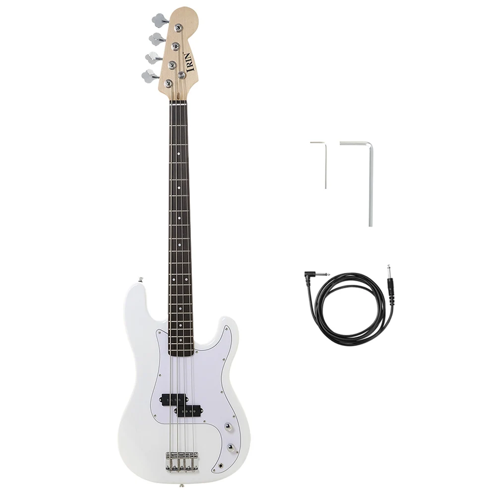 IRIN Electric Bass Guitar 20 Frets 4 Strings Basswood Bass Guitar Stringed Instrument With Connection Cable Wrenches Accessories Specifications: Type: Electric Bass Guitar Color: White Size(cm): 117*33*4 Material: Basswood Fingerboard material: Rosewood Pickup: Separated P-B Controller: 1 quantity button, 1 tone buttons Package List: Wrench * 2 Electric Bass * 1 6 cable * 1 Tuner*1(optional) Straps*1(optional) String * 1(optional) Bass Bag * 1(optional) Note: The shade of the equipment can be despatched randomly Light taking pictures and diverse displays could cause the color of the thing within the photo slightly various from the real thing