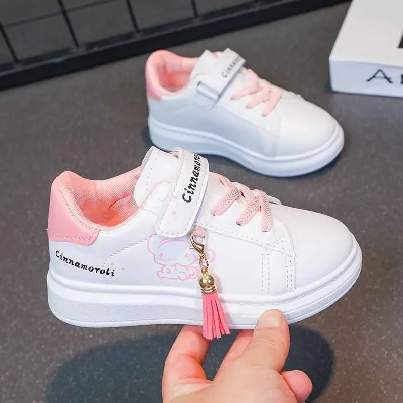 Kid's Four Season Fashion Lovely Tassels Small White Shoes Cartoon Print Cute Casual Sneakers Children Trend Board Shoes