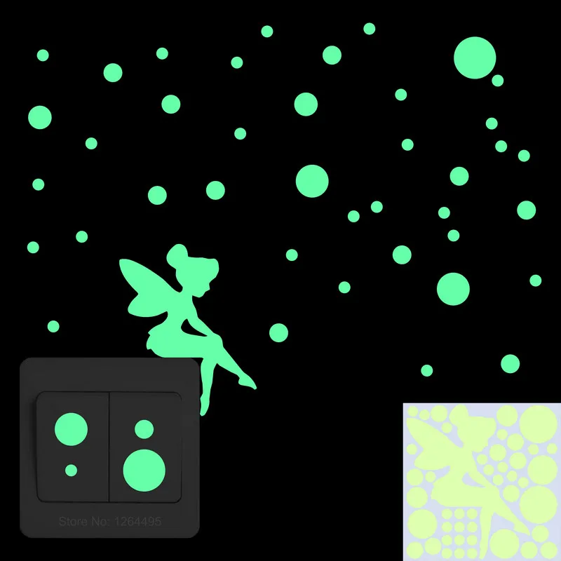 Kids Wall Sticker Fairy Luminous Stickers Baby Room Children Bedroom Home Decor Stickers Kitchen Bathroom Glow Switch Decoration