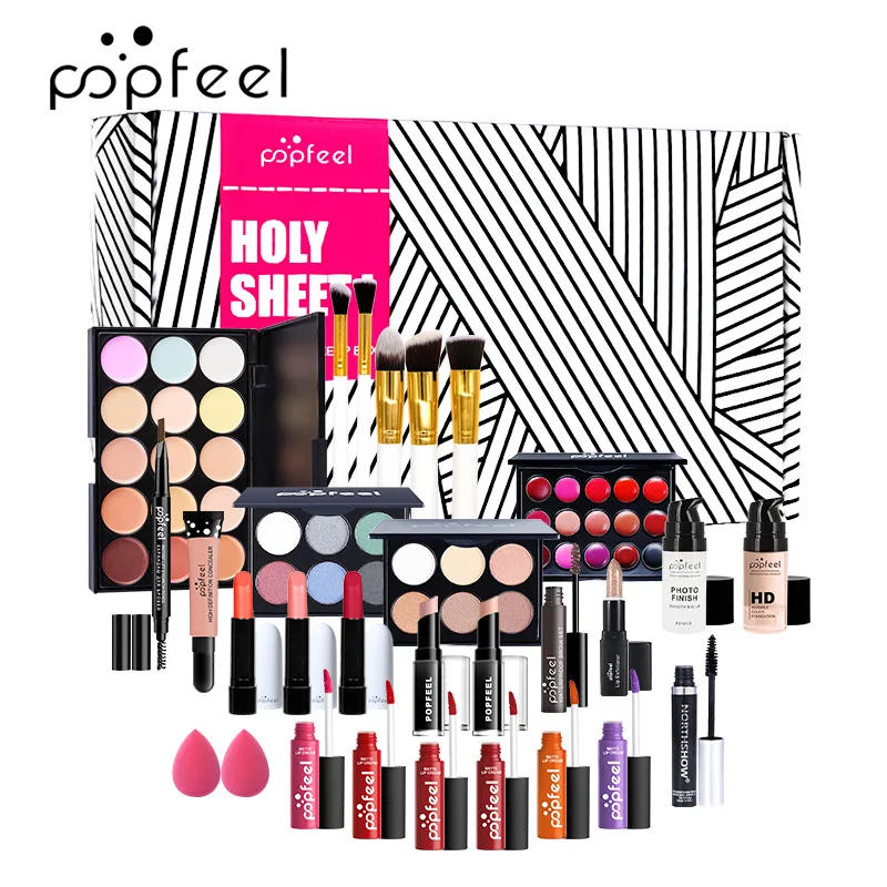 KIT011 Make Up Sets Cosmetics Full Set Eyes Face Skin Cosmetics Makeup Brushes Makeup Bag Primer ALL IN ONE Fenty Beauty Kit POPFEEL ALL IN ONE MAKEUP KIT Combo bundle of all NEW Beauty Tools and Accessories. Complete girl/teen makeup, perfect gift set for holiday and Christmas gift idea for teen girls, gift for mom, gift for kids, gift for females and Holiday Christmas stocking stuffers You MAY receive full size makeup, mini size makeup, sample size makeup, Makeup sets, Makeup kits, brush sets (if we have any extra) , brush pouch or organizer, cleanser or nail accessories, nail dotting brushes, nail decorations or etc. POPFEEL all in one Holiday exclusive Makeup Set contains all the necessary and basic makeup tools that every girls need. This is a great makeup kit for beginners and teen girls.