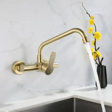 Kitchen Brushed Gold Wall Mounted Faucet Rotation Stainless Steel Lead Free Sink Water Mixer Tap Griferia Para Cocina