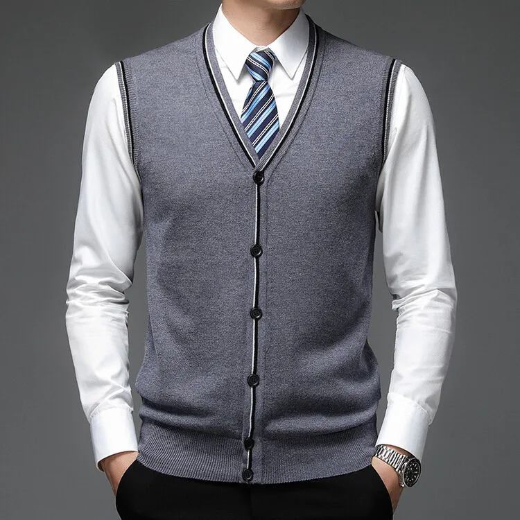 Man Wool Sweater Coats Vest 2024 Autumn Winter Men Knitted Man Single Breasted Sleeveless Sweater Cardigan