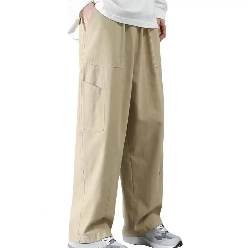 Men Pants Loose Trousers Japanese Style Men's Cargo Pants with Wide Legs Elastic Waist Multi Pockets Streetwear for Wear