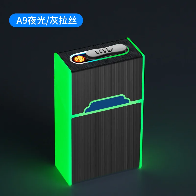 New 2 In 1 Luminous Cigarette Case 20pcs USB Rechargeable Cigarette Lighter Windproof and Dropproof Cigarette Case Gift