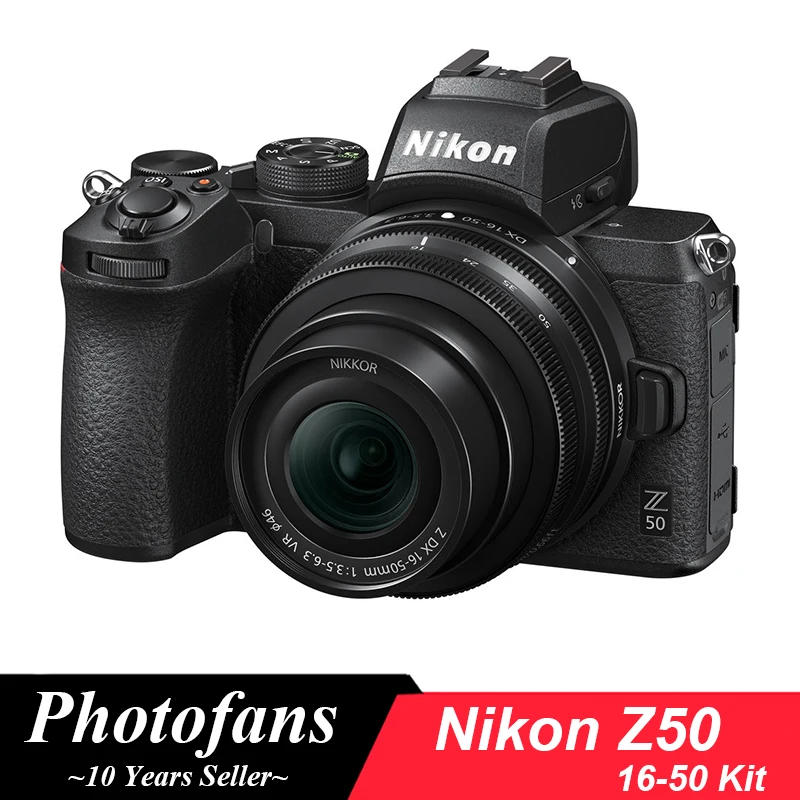 Nikon Z50 Mirrorless Camera with 16-50mm Lens 20.9MP DX-Format CMOS Sensor EXPEED 6 Image Processor UHD 4K and Full HD Video Recording 2.36m-Dot OLED Electronic Viewfinder 3.2" 1.04m-Dot 180° Tilting Touchscreen ISO 100-51200, Up to 11 fps Shooting 209-Point Hybrid AF, Eye Detection Built-In Wi-Fi and Bluetooth NIKKOR Z DX 16-50mm f/3.5-6.3 VR Lens Sporting an especially sleek design, the Nikon Z50 is a DX-format mirrorless digital camera revolving around the versatile Z Mount. Capable in both stills and video realms, the Z50 features a 20.9MP CMOS sensor and EXPEED 6 image processor, which enables fast performance up to 11 fps, a reliable 209-point hybrid AF system with eye detection, and notable low-light performance to ISO 51200. For video shooters, UHD 4K is supported up to 30 fps along with Full HD recording at up to 120 fps for slow-motion playback. For fine-tuning your photos and videos, in-camera clip trimming can be used, and 20 Creative Picture Controls and 10 Special Effects settings help to infuse your imagery with a unique look. The body design is impressively sleek yet still ergonomic to benefit all-day-long shooting. A high-resolution 2.36m-dot OLED EVF benefits working in bright conditions with clear eye-level viewing and the 3.2" rear touchscreen LCD has a 180° flip-down design that is perfect for selfies. The magnesium alloy body is weather-sealed, too, to suit working in inclement conditions. Additionally, for easy sharing, built-in Wi-Fi and Bluetooth work in conjunction with the Nikon SnapBridge app for wirelessly transferring photos and videos and remotely controlling the camera from your mobile device.