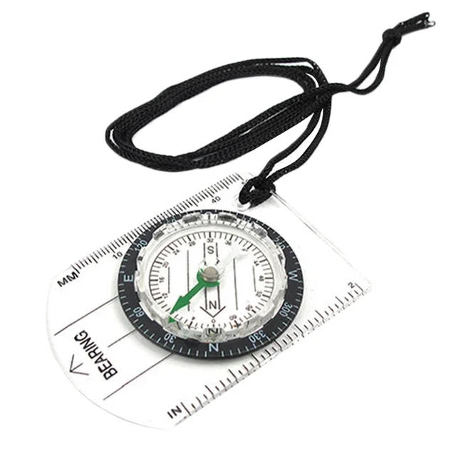 Outdoor Mini Compass with Straight Rulers MM/INCH Hiking Map Scale Ruler Lanyard Camping Accessories