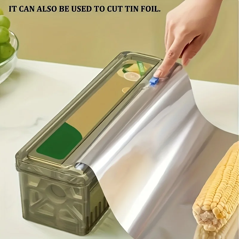 Plastic Wrap Cutter, Plastic Cutting Box with Sliding Blade, Simple Household Slicing Tool, Essential for Kitchen Storage and Organization, Restaurant-Grade Cutting Tool