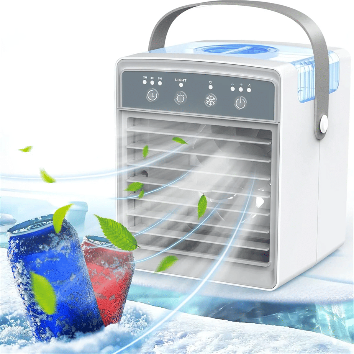 Multifunctional 4-in-1 Design: This transportable air conditioner is designed to serve as a fan, air conditioner, night light, and an evaporative humidifier. Backed by means of technique of a strong motor and a different air duct design, it guarantees a funky and cozy breeze that helps you beat the heat and have a cool summer. Portable and USB-Powered: Designed with comfort in mind, this small 6 cooling fan needs simply water and ice-cube for operation. The tiny length makes it superb for desktops and small rooms. It can be run utilizing adapters, power banks, computers, or car chargers, courtesy its USB power input. Customizable Modes and Times: This moveable swamp cooler gives three speed modes - low, medium, and immoderate - allowing you the freedom to regulate as in keeping with your needs. Furthermore, it elements automated timing solutions (1H/3H/6H) to matches your leisure, sleep, or work agenda effectively. Atmosphere-Enhancing Features: Boasting a built-in evening smooth with seven appealing colors, our portable AC unit lends a fetching ambiance at a mere button press. The in-built mist sprayer could be easily controlled for wind pace and timing, guaranteeing an easy-to-operate and comfy summer experience. Energy-Efficient and Noise-Less Operation: Aiming to supply you comfort, this air conditioner works at low noise phases and is energy-efficient. It is ozone-free and thus safeguards health. Compact and economical, it also features a useful strap for easy portability. A superb birthday reward for summer occasions. Colour:Gray & White Material:Plastic Package Contents: 1 * Cooler 1 * USB cable Only the above kit content, different item should not included. Note: Light mirrored image and different exhibits could cause the color of the item in the photo just a little diverse from the genuine thing. The size allowed error is +/- 1-3cm.