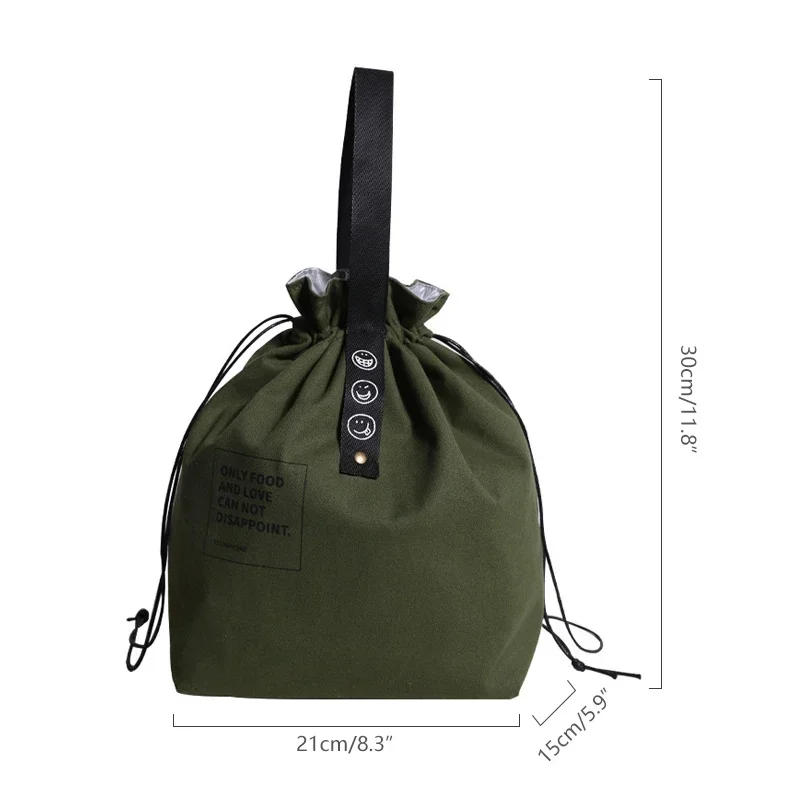 Simple Drawstring Strap Insulated Lunch Bag Drawstring Storage Canvas Lunch Bag Camping Picnic Bag Camping Travel Accessories