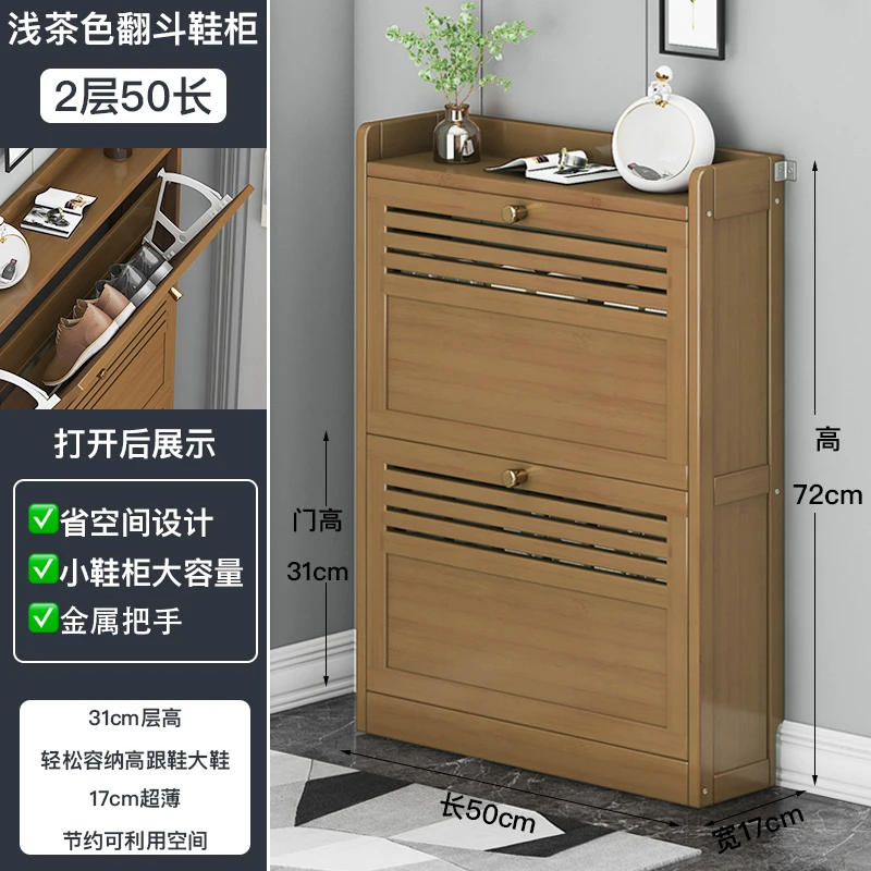 Simple shoe rack dust-proof shoe cabinet, solid bamboo storage cabinet with integrated partition for home entrance to save space