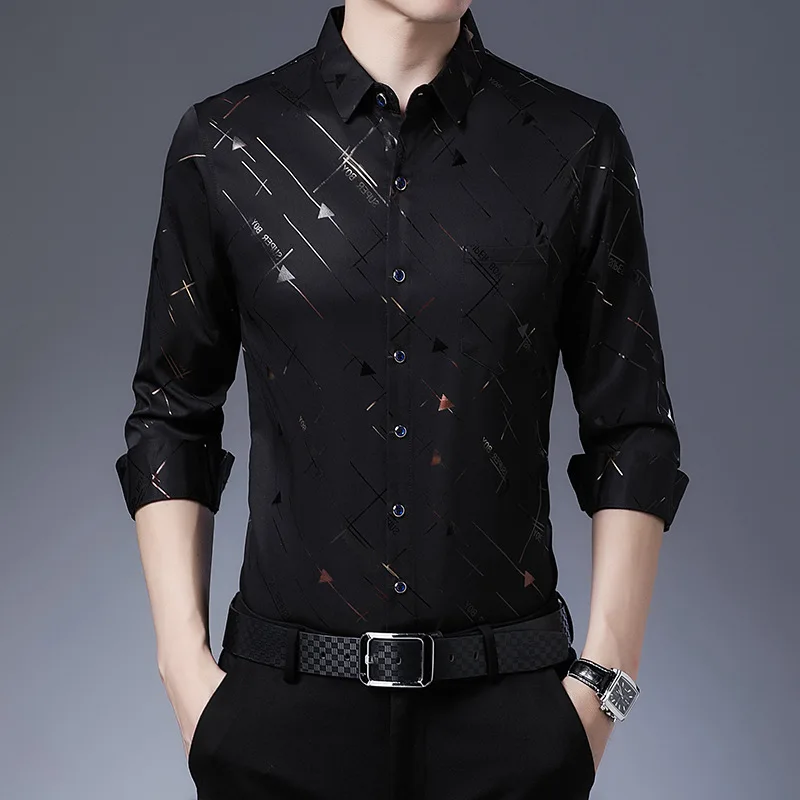 Smart Casual Men Striped Smooth Shirts Streetwear Fashion Spring Summer Business Male Clothing Quick-drying Long Sleeve Blouse