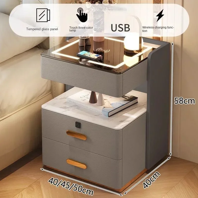 Smart Home Bedside Table, Wireless Charging Password Lock, Three-layer Bedroom Storage, Solid Wood Storage, Bedside Cabinet