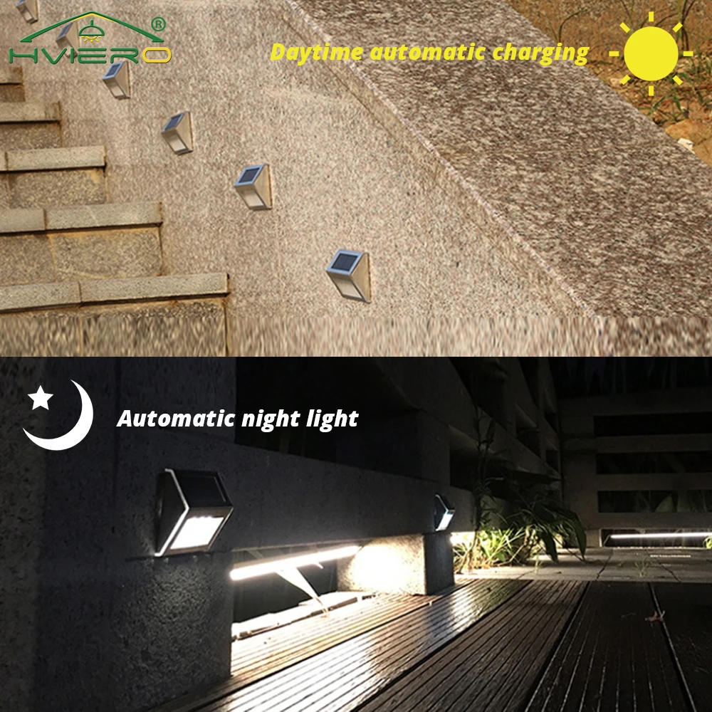 Solar 3LED Charging Lights Stair Stainless Steel Outdoor Garden Decorative Atmosphere For Home Courtyard Wall Fence Park Lamps