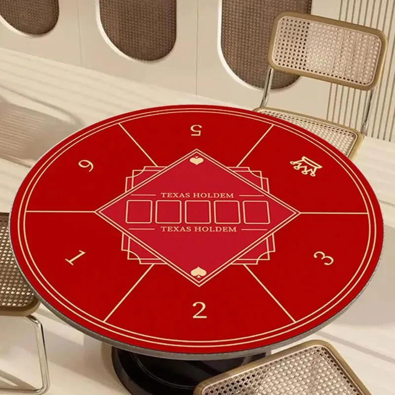 Table Mat 6 Players Texas Hold'em Table Cloth 47inch Waterproof Rubber Round Poker Mat Portable Casino Board Game Top Layout