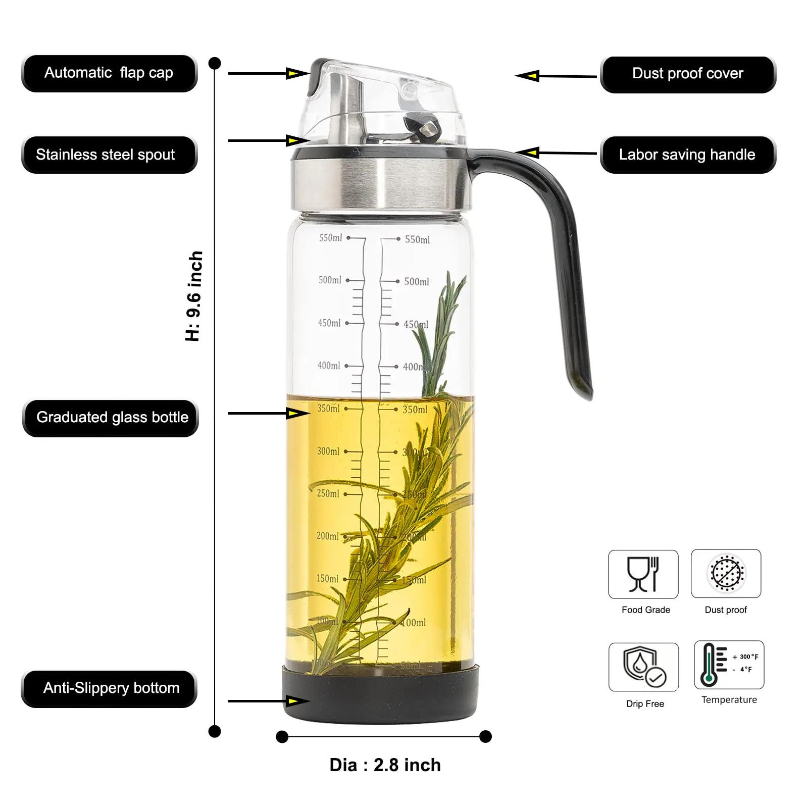 Features: 1 Quality Material: The product is product of high-quality Borosilicate glass+304 stainless steel, very durable, safe, and rust-resistant, suitable for kitchen use 2 handle:Easy to hold the manage to circumvent burns Dust-poof lid,Silicone base non-slip design three with a filter to filter small debris of fried oil for convenient use 4 allows you to reuse your cooking oil a number of times without wasting or affecting the flavour of alternative dishes 5 The clear pot can clearly see the oil and has a scale 6 glass bottle body can be utilized for baking measuring tools, heating milk, and many others Specifications: Material: Food grade Borosilicate glass+304 stainless-steel Capacity: 1L/1 Size: because the photo displays High temperature and cold resistance Packages: 1* Oil Filter Pot About 550ml Oil Dispenser Bottle: If item broken throughout delivery ,we will organize resend again,please don&;t worry about our service,you won&;t get any misplaced
