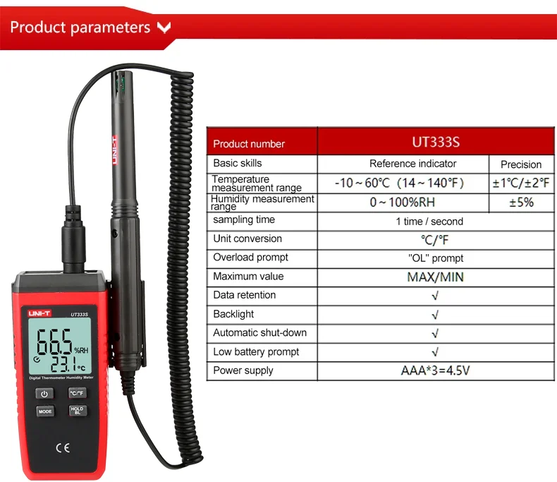 UNI-T Digital Anemometer UT363S 0.4~30m/s Wind Speed Sensor Meters Temperature Tester Measuring Instruments