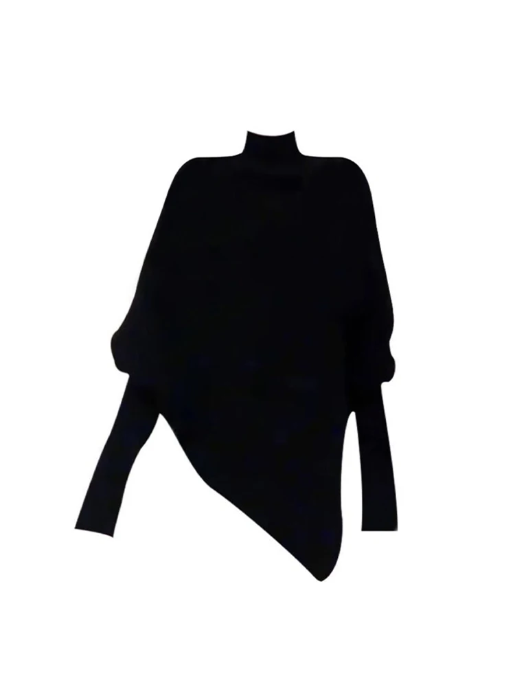 Women Black Gothic Pullover Sweater Harajuku Aesthetic Y2k Long Sleeves Turtleneck Knitted Sweaters Vintage 2000s Clothes Autumn