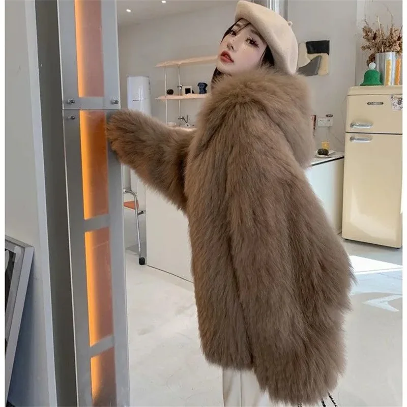 Women Outerwear 2024 Winter Internet Celebrity Explosion Street Lazy Style Environmentally Friendly fox fur Imitation fur Plush