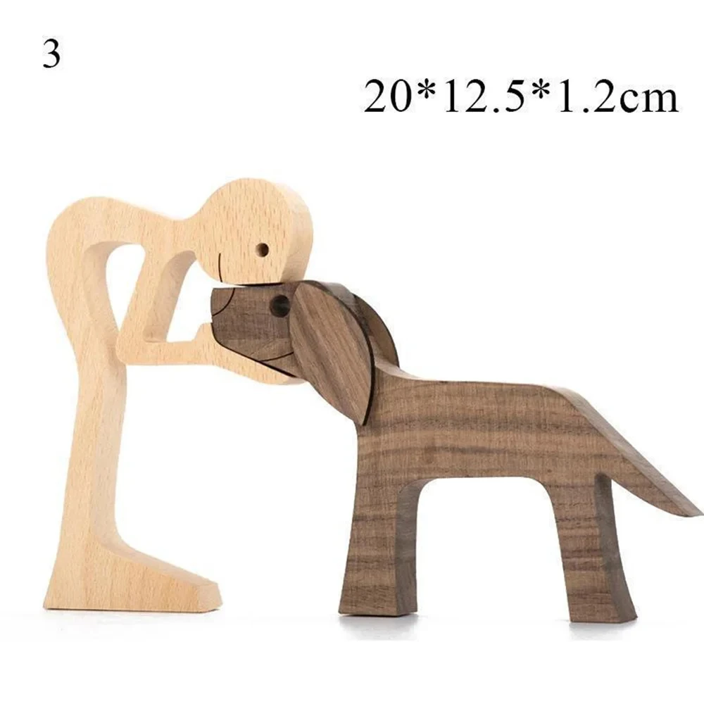 Wooden Man and Dog Carving Statue Sculpture Home Room Office Tabletop Figurine Decoration Handmade Wooden Dog Gift for Dog Lover