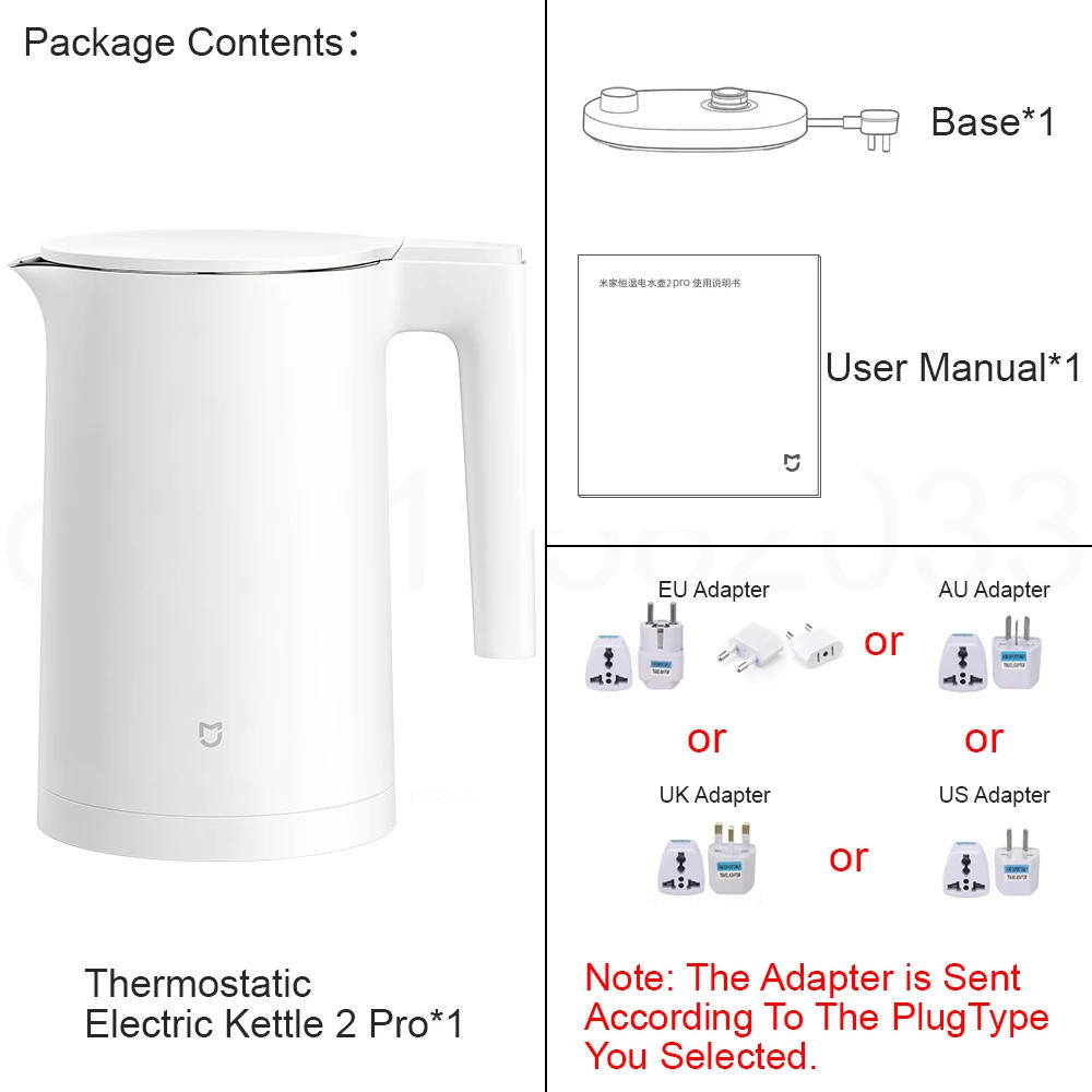 Note: The adapter might be incorporated when sending the package,Because this product is a Chinese version, please substitute the rustic to "China" when connecting the "MI HOME" APP, and the language could be set in line with the native country If some devices fail to connect for a certain era of time, the WIFI of the system needs to be reset,If you've any questions, please touch us at the first time We are completely happy to reply them for you We will ship the correct plug adapter or conversion plug for your country Iconic Brand MIJIA Thermostatic Electric Kettle 2 Pro Features *Low noise | Precise temperature law | Multiple modes of boiling water | 24H heat preservation | 1800w energy * Dry-burning computerized power-off, hot temperature fuse protection, automatic power-off when water is grew to become on * The inside the kettle physique is equipped with a noise reduction coating, which might efficiently lower noise * 1 large capacity, Avoid frequent boiling of water * Can be adjusted to the temperature you want, each 1°C would be adjusted * Intelligent multi-mode boiling water for various water quality requirements * APP customizes the temperature adjustment, the operation is terribly straight forward Iconic Brand MIJIA Thermostatic Electric Kettle 2 Pro Low noise | Precise temperature legislation | Multiple modes of boiling water | 24H heat preservation | 1800w energy Noise discount upgrade, quietly, the water has been boiled Upgraded light-sound design, with a noise-reducing coating inside the kettle body, which can efficiently reduce noise, so you can wait round and paintings and rest without being disturbed by way of noise Stepless knob temperature adjustment, twist out the temperature you like Stepless knob temperature adjustment, adjustable every 1°C, removing the cumbersome buttons and gently twisting is what you like Customize the temperature adjustment, click on a little,Free switching is straightforward APP tradition temperature adjustment design, the equipment would be set through you to simply customize your preferences, and the temperature adjustment is extra handy and convenient Note:Because this product is a Chinese version, please exchange the rustic to "China" when connecting the "MI HOME" APP APP long-term heat preservation, maintain the warmth you like The Mijia APP sets the temperature in advance, and adjusts the heat preservation time in line with the needs, that are prolonged to 24 hours* Get up early and drink a cup of heat water as you want Note:Because this product is a Chinese version, please substitute the rustic to "China" when connecting the "MI HOME" APP More than one mode of boiling water to fulfill diverse water needs According to diversified water quality needs, intelligent multi-mode boiling water makes boiling water more handy and worry-free 1 Tap water mode: one-button boiling, automated cooling, boiling, directional warmth preservation 2 Pure water mode: no use to boil and anticipate the water to cool, immediately warmth to the heat preservation temperature 1 vast capacity, satisfactory to boil at one time, numerous people can drink to their heart&;s content material 1 huge capacity, avoid common boiling water, multiple humans can drink freely, and simply replenish 1800W heat soars, soon cook dinner a pot 1800W excessive power, bringing greater pace and efficiency, saving time, boiling water soon, etc Selection of high quality controllers, precise temperature control and extra peace of mind Using high-quality thermostat, stable performance, exact temperature control and whole boiling, high-quality and extra peace of intellect Multiple worrying protection, give family extra peace of intellect 1 Double-layer protection, safe pouring with out sizzling hands: the internal and outer double-layer body design forms a center heat insulation layer, the water in the pot reaches boiling state, and the outer layer of the pot body isn't always scorching 2 Triple energy protection, more assured use: automated energy off for dry burning, extreme temperature fuse protection, and automatic energy off for boiling water Detail 1 LED display: Every exchange could be considered 2 Smart light ring: The state of boiling water is obviously visible three Super large button, one press to open 4 One-piece spout design: round and leak-free 5 Two-stage damping opening: prevent steam from escaping directly 6 Integrated 304 stainless-steel liner: food contact grade, secure and wholesome boiling water