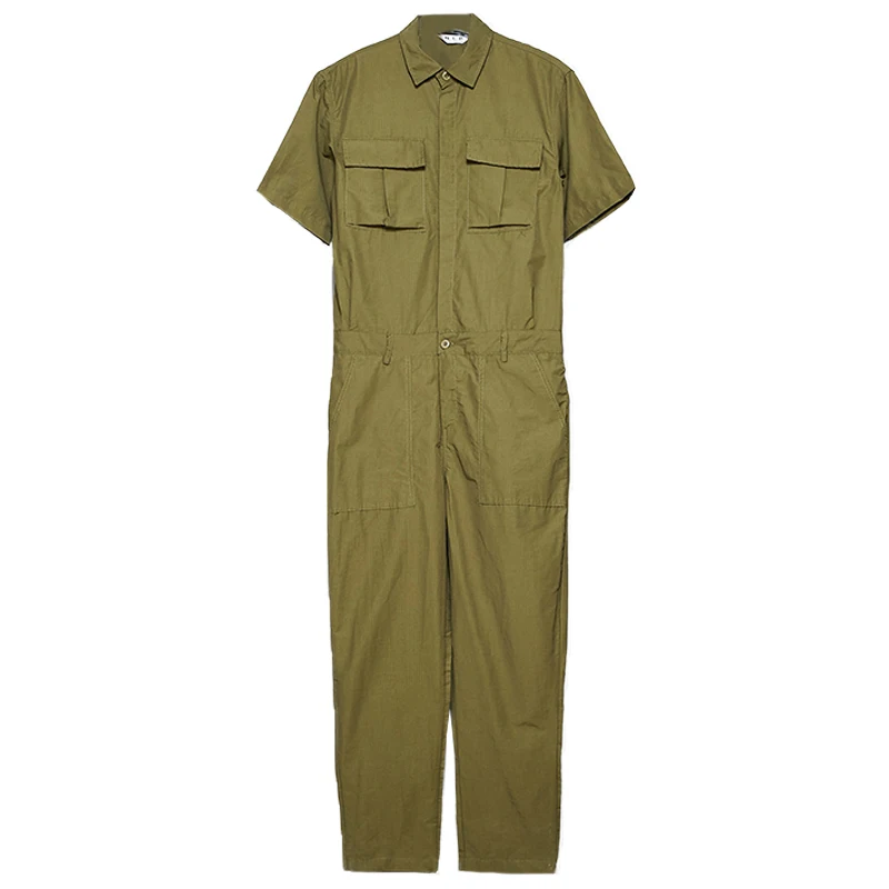 Yamamotostyle Pants Spring And Summer New Green Tooling British Fashion Light Industrial Style Lapel Jumpsuit Jumpsuit