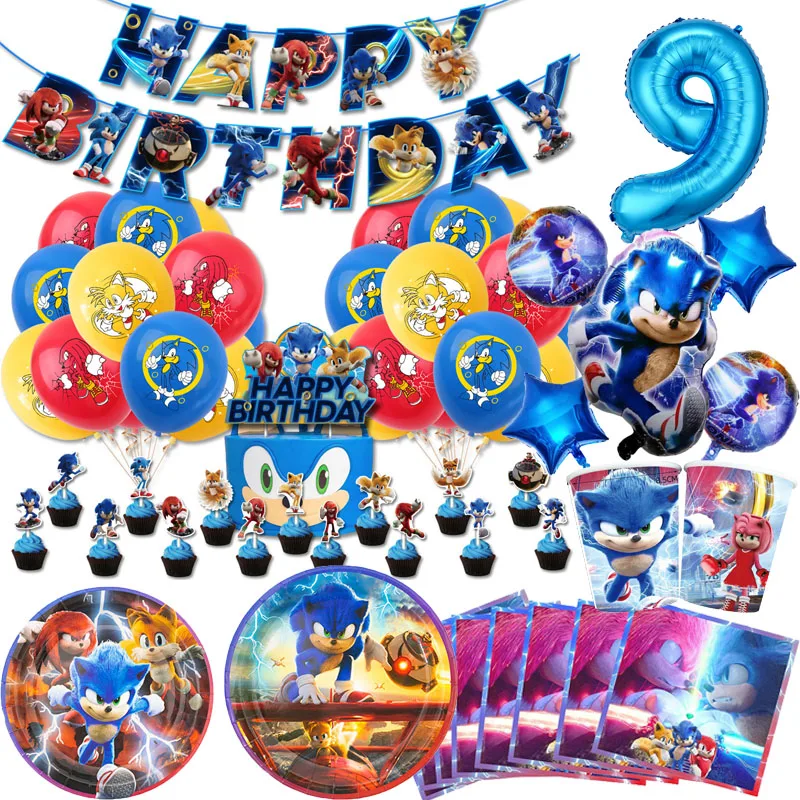 New Cartoon Sonics Party Supplies Balloon Kids Event Supplies Disposable Tableware Set Banner Backdrop Baby Shower Decorations
