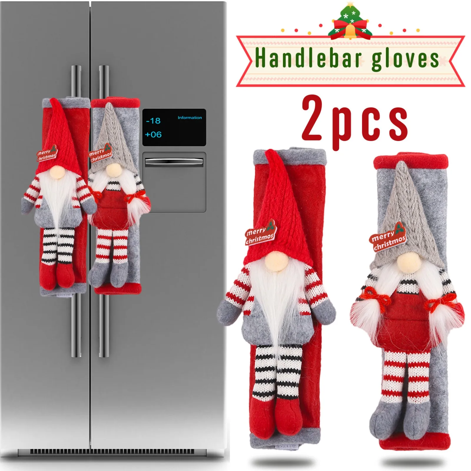 1Set Christmas Refrigerator Handle Cover Cloth Microwave Kitchen Fridge Door Knob Protector Xmas Decorations Home