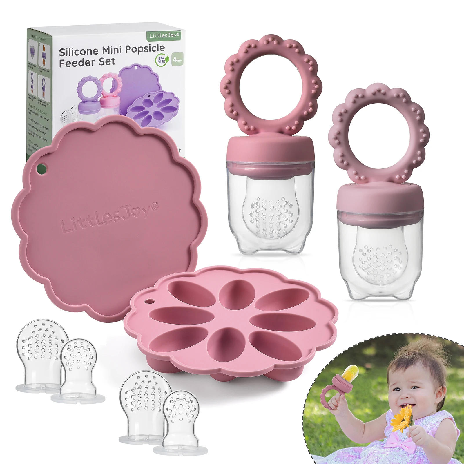 1 set-Sunflower Baby Fruit Feeder Set Silicone Mold Ice Cream Maker 2 Popsicle Molds 1 Tray Baby Feeder With Nipples