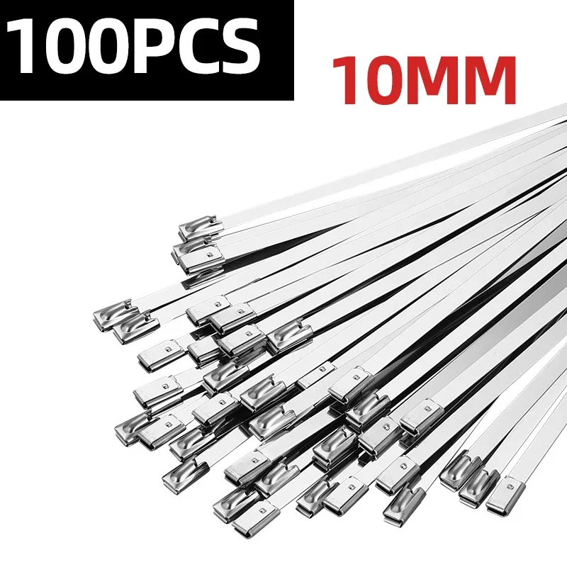 100 Pcs Stainless Steel Metal Cable Ties Locking Metal Zip-Exhaust Self-sealing Cable Tie Multifunctional Locking Cable Ties