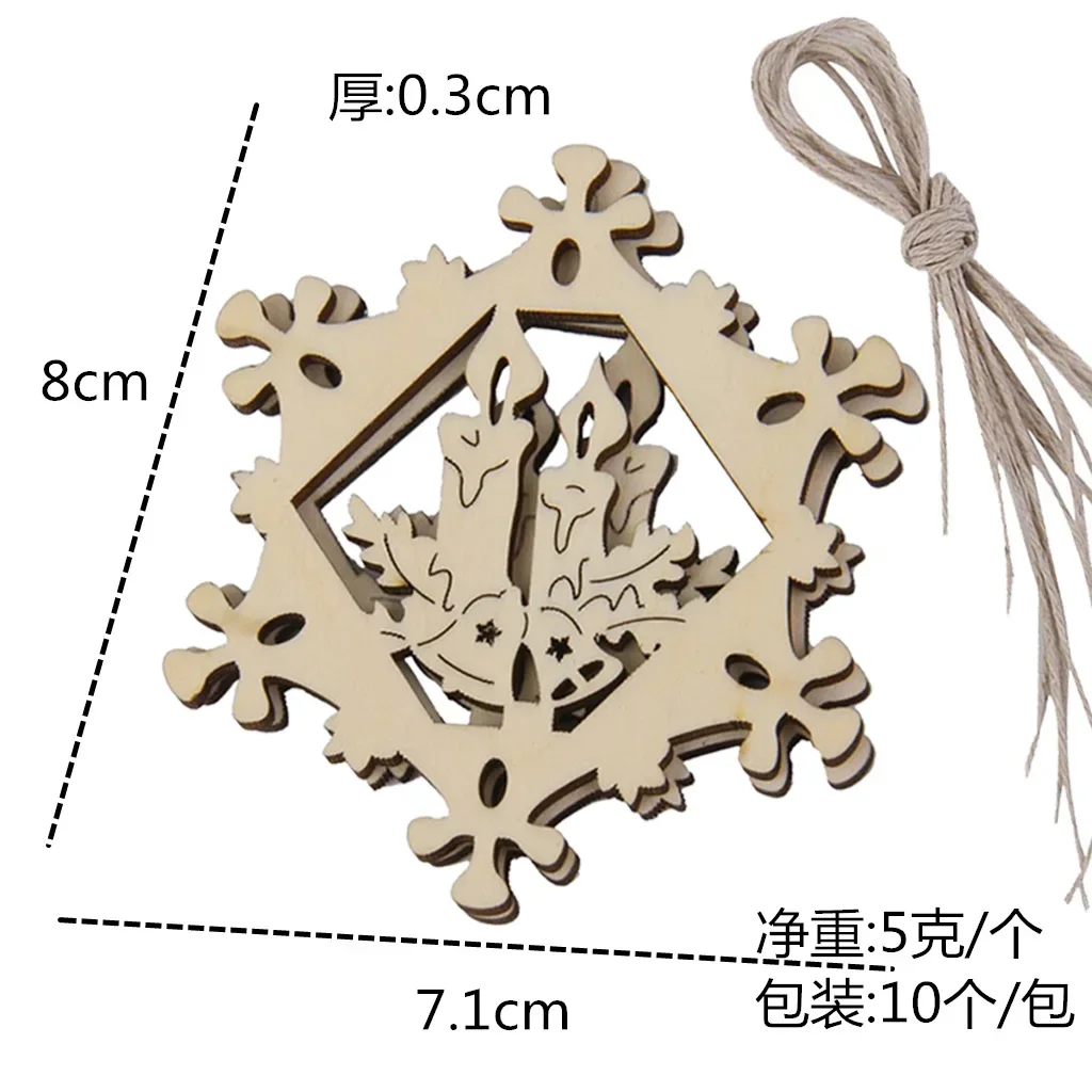 10Pcs Christmas Wooden Pendants Ornament Hollow Out Wooden Christmas Tree Pendants For DIY Crafts Christmas Decoration Product Description: Material - The Christmas pendants are made of nice artificial wood, are strong and durable, the surface is gentle and burr-free Christmas points - Four diverse patterns for Christmas themes, including Christmas trees, bells, candles and anise stars, a total of 10Pcs The size is approx 8 x 8 cm Easy to install - There is a round hole in the wood ornaments Christmas, the rope could be easily installed, is so easy to hold Perfect ornament - These wood Christmas pendants are supreme for putting on a Christmas tree as a ornament and also are your best option to decorate a gift, card, tags or window Widely used - The wooden pendant decorations are suitable for hand-painted DIY, home, cafe, restaurant and garden decorations and fit completely with the Christmas theme and iciness environment