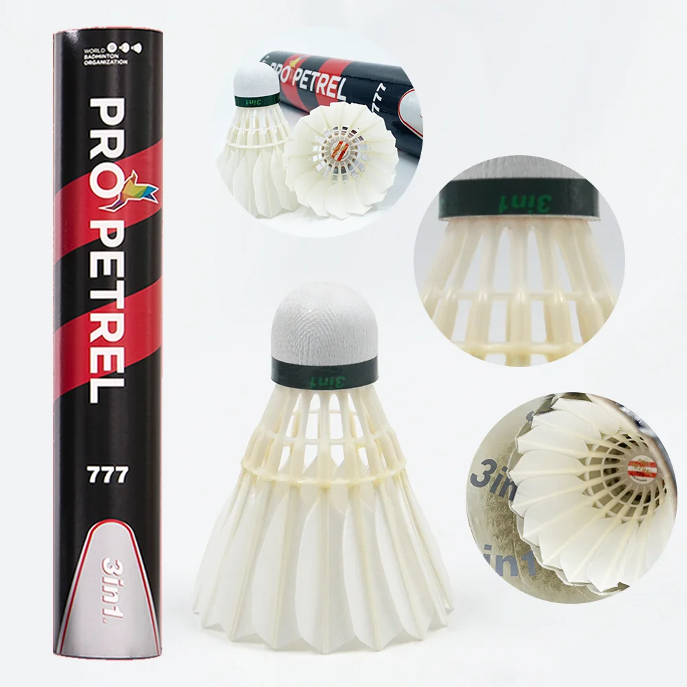 12PCs Pro Petrel 777 3in1 Class A Duck Durable Hybird Feather Shuttlecock Birdies Speed Environmental Shuttlecocks Sports Game