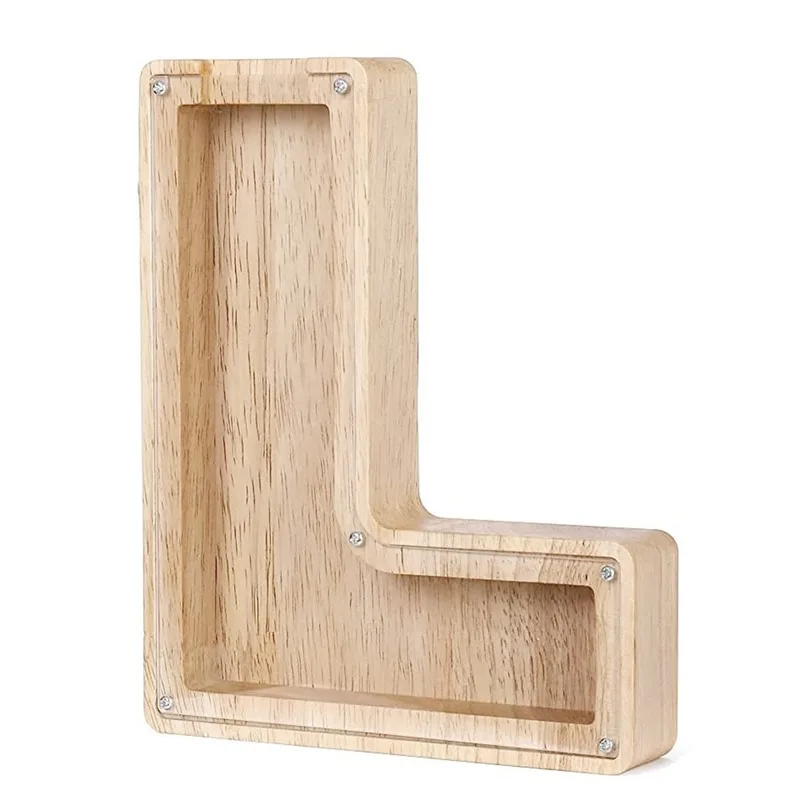 18cm Twenty-six Letter Piggy Bank Wooden Coin Money Saving Box Jar Coins Storage Box Desktop Ornament Home Decor Craft Xmas Gift