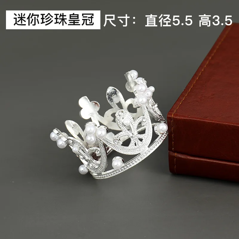 1PC Mini Crown Cake Decoration Princess Topper Pearl Tiara Crown Baking Decoration DIY Cake Birthday Crown Decoration Supplies