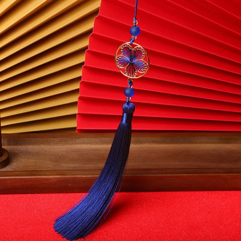 1Pcs 14Cm Tassels Pendant Round Ring Flower Beaded Peach Blossom Tassels With Hanging Rope DIY Clothes Bags Crafts Fans Fringe