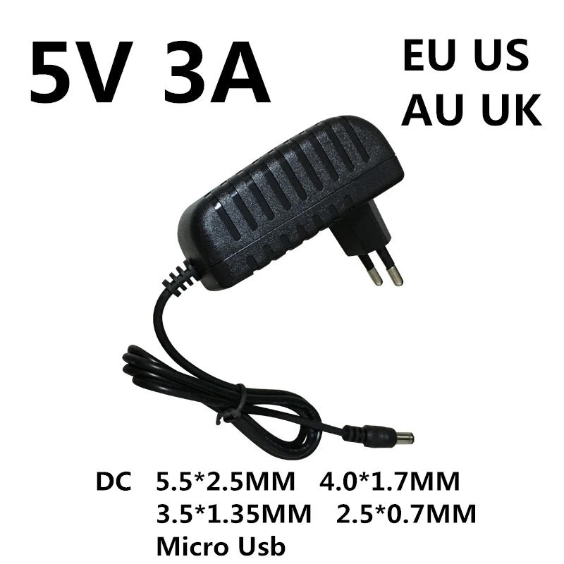 1pcs DC 5V 3A 3000MA Micro Usb Ac/dc Power Supply Adapter EU US AU UK Plug Charger 5 V Volt For Raspberry Pi Zero Tablet Pc