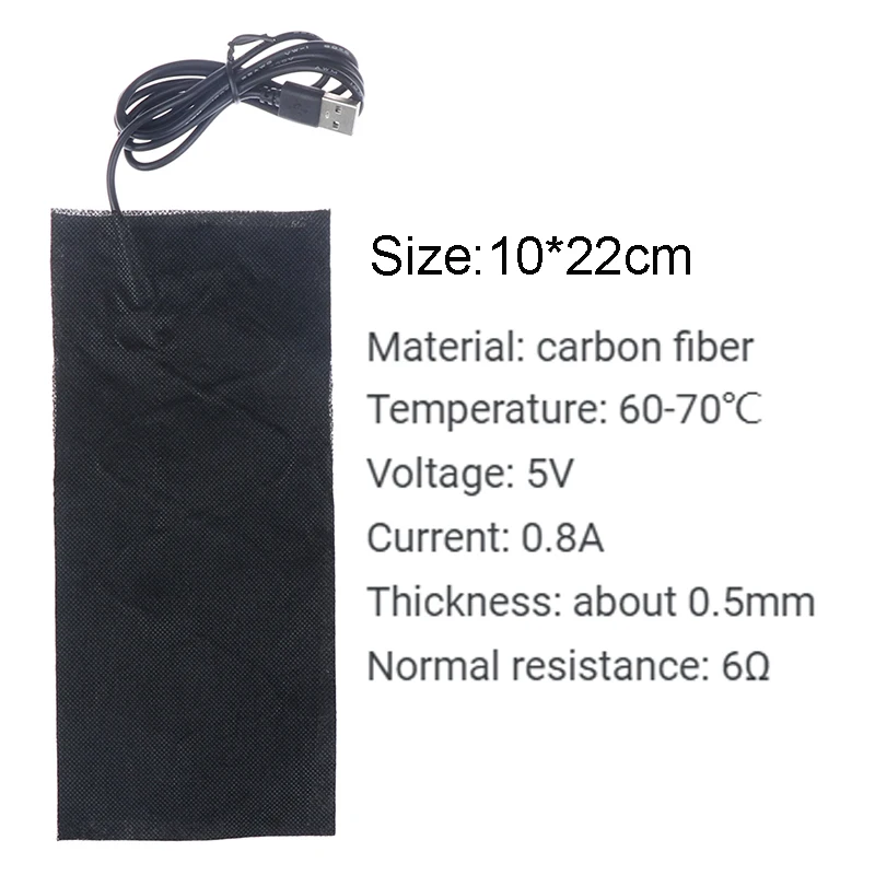 1 Soft, comfortable, flexible, wear-resistant, insulated, and washer-friendly by water 2 Temperature control and adjustment by way of 3 gears 3 Press and preserve the button for 3 seconds in the state of power-on to go into the 30-minute timer status, and the present temperature indicator flashes four Application Area: clothes, vests, waists, abdomens, pets and so on 5 and convenient, environmentally friendly 6 Safe, non-toxic NOTE : This product is forbidden for babies,disabled people,and people who are not touchy to heat 2 OUTPUT INTERFACE - Please use the two output interface,and it would not exceed the restricted energy TEMPERATURE - High temperature 60℃,Medium temperature 50 ℃,Low temperature forty ℃'t use household strength immediately heating material strength is 7W WATERPROOF - Waterproof anti-folding,high security temperature installed within the open air jackets,vests and different clothing for heating DO IT YOURSELF - Easy and handy to apply heating pads for DIY heated clothes Specifications: 1 Type: Heating pads 2 Color: Black three temperature resistance: 6-8Ω 4 voltage: 5V 5: 0 6 best temperature: Up to 65 ℃ 7: Winter Package Included: 1X Heating fabric pad