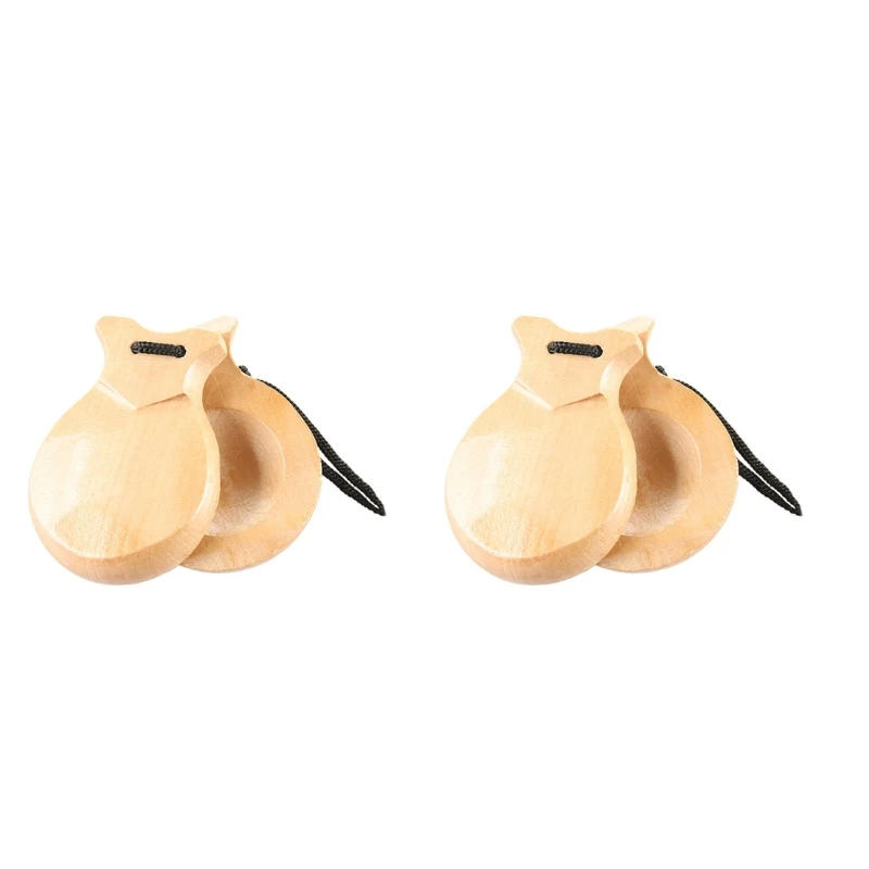 2 Pcs Traditional Flamenco Castanets Spanish Castanets with String Wooden Hand Percussion Music Instrument for Beginner