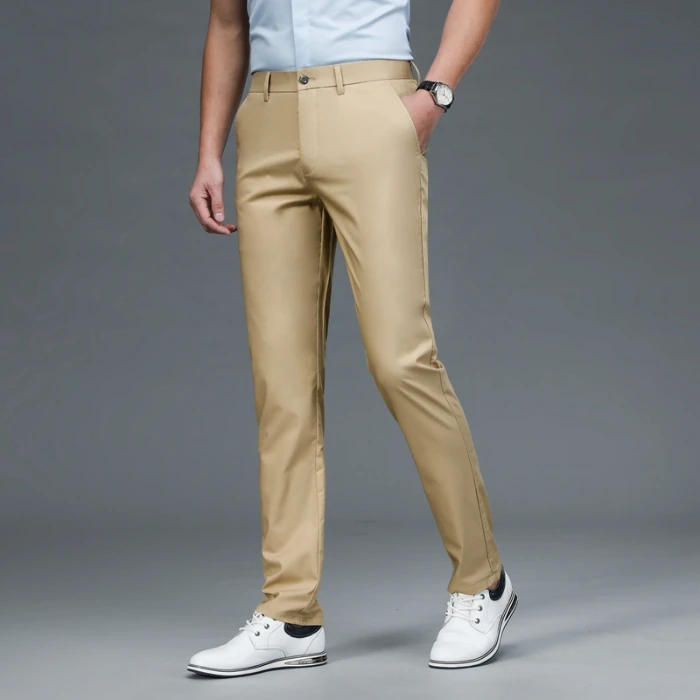 2024 Casual Pants Men's Summer Thin Loose Straight Stretch Anti-Wrinkle Simple Fashion Office Business Formal Suit Trousers