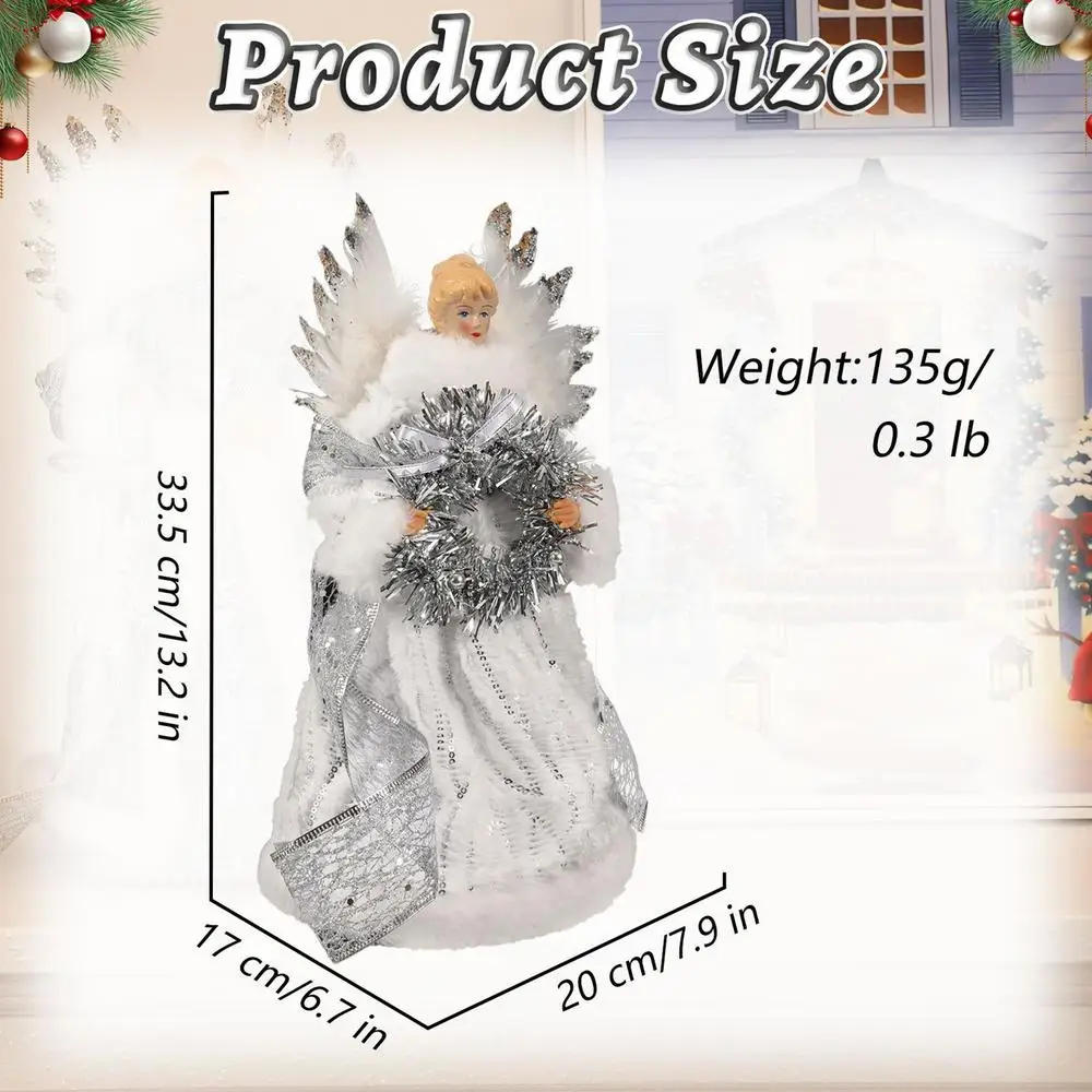 2025 Christmas Tree Topper Angel Fairy With White Feather Wings no mild 3d Christmas Tree Top Decoration Ornament Bullet Points: 1 Serenity: Get attractd by the fragile fantastic thing about this angel tree topper that brings a touch of peacefulness and radiance to your Christmas setting, making it extra chic and serene 2 Angel Glow: Featuring movable hands, an elegant golden layered dress, white feather wings, and rosy cheeks and blonde hair, it provides a splash of magnificence to your festivities 3 Time & Effort: The transparent inverted cone below her dress guarantees a perfect fit for 3-5 ft trees Enjoy easy set up and save time this holiday season 4 Festive Elegance: Placed atop your tree, this angel accentuates your corner area with a chic and adorable design, turning your decor into a enthralling Christmas scene With its charm, it instantly creates a festive environment five And Thoughtful Present: Radiating grace and beauty, it is the perfect realistic and thoughtful reward to ship them day-after-day surprises, and send care and blessings which will become a centerpiece of their vacation celebrations for years Add a touch of magnificence and comfort for your vacation decor with our charming angel tree topper Perfect for 3-5 foot Christmas trees, this topper adds either cuteness and elegance to your tree This angel will send care and blessings to your relatives during the vacation season Product: Christmas tree topper angel Material: Fabric + ABS Product size: about 33/13 inches list: Christmas tree topper angel*1 piece
