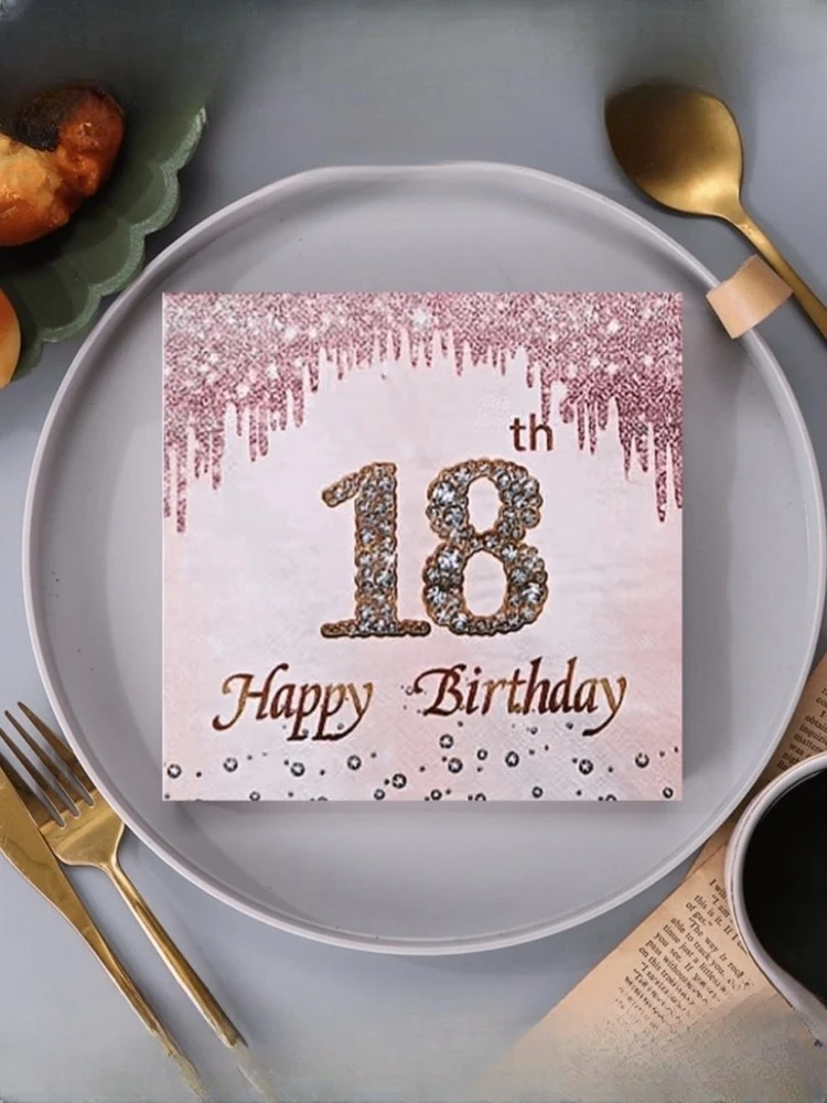 20pcs pieces/pack, 40, 50, 60, 70 year old rose gold diamond printed Happy Birthday napkins, birthday party table decorations