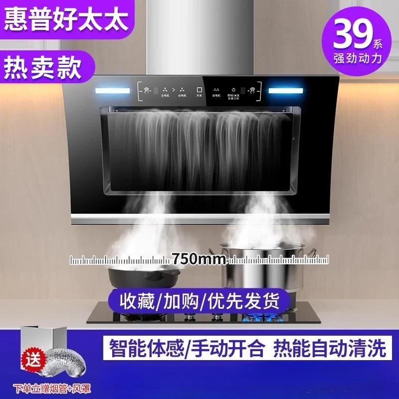 220V Haotaitai Dual Motor Range Hood Kitchen High Power Auto Cleaning Side Suction Extractor