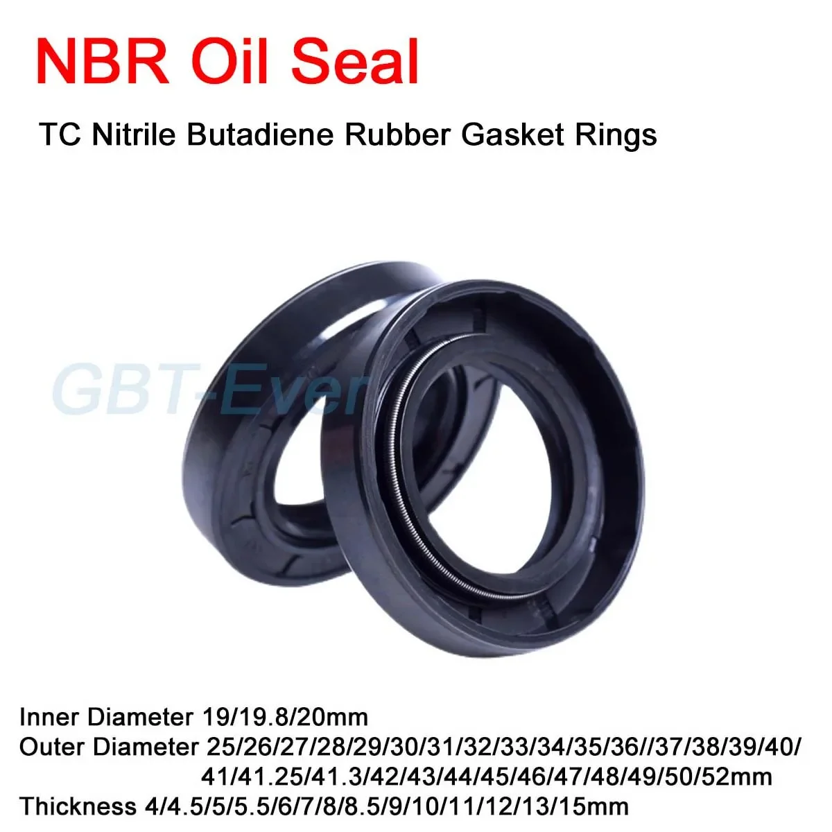 2Pc NBR Framework Oil Seal ID 19/20mm TC Nitrile Butadiene Rubber Gasket Ring Cover Double Lip with Spring OD 25-52mm THK 4-15mm