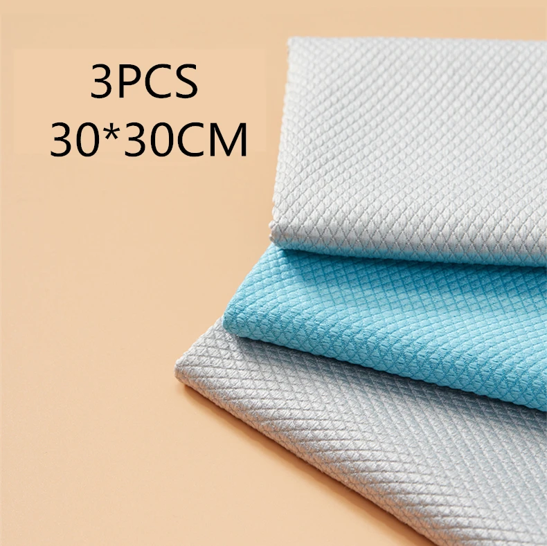 3PCS 12 x12 in Microfiber Glass Cleaning Cloths Bathroom Rags Lint Free Easily Clean Windows & Mirrors Dishcloth Kitchen Towel