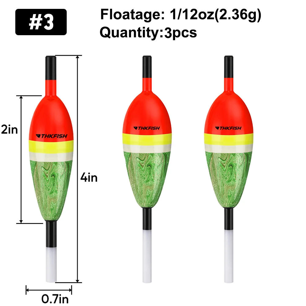 Specifications: Item: Fishing Floats Material: Balsa Wood Quantity: 3pcs Buoyancy: 2(1/12oz), 9(1/3oz), 11(5/12oz) Package list: 3pcs mini fishing floats
