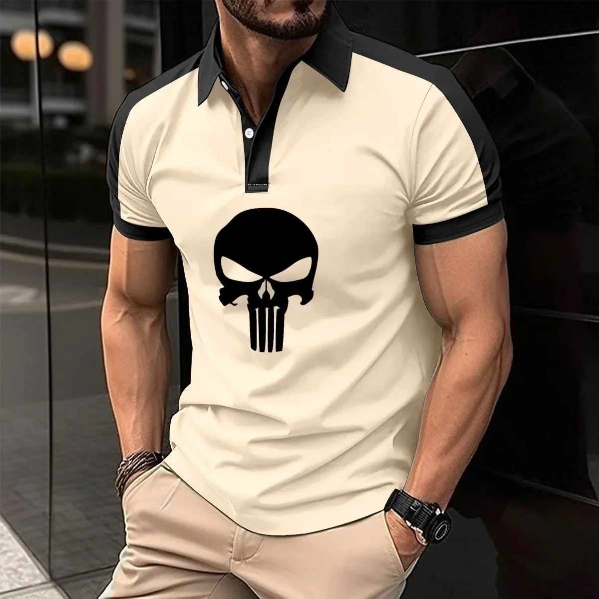50% Cotton Polo Men Shirt Short Sleeve Polo Shirt Contrast Color Polo Skull print Summer Streetwear Casual Fashion Men tops