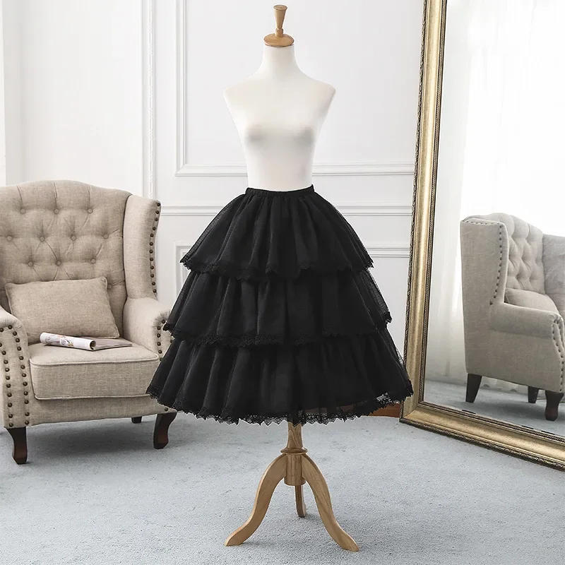 Adjustable Tea Length Lolita Petticoat Puffy Crinoline Underskirt with Lace Trimming Fabric: polyester Features: 3 layers of lace, three metal hoops, satin lining Order processing time: 7 days Petticoat Size in CM One Size: Length 50-70cm, waist 60cm-90cm