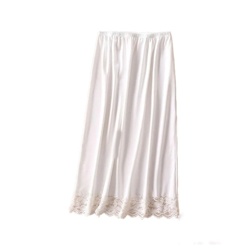 Anti-glare Women's Lace Long Petticoat Mesh Flower Inside Take Safety Underskirt Slips Pure Color Prevention Security