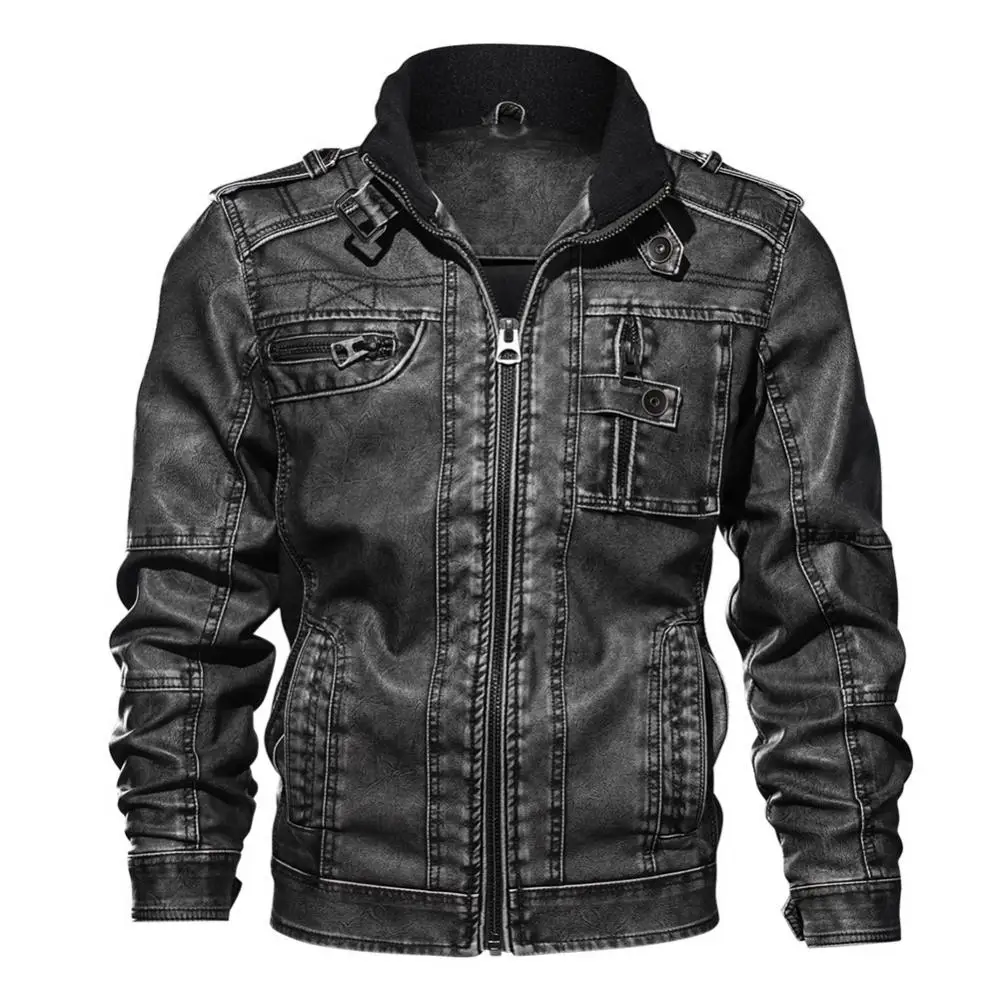 Autumn Men Fashion Faux Leather Stand Collar Casual Motorcycle Biker Jacket Coat